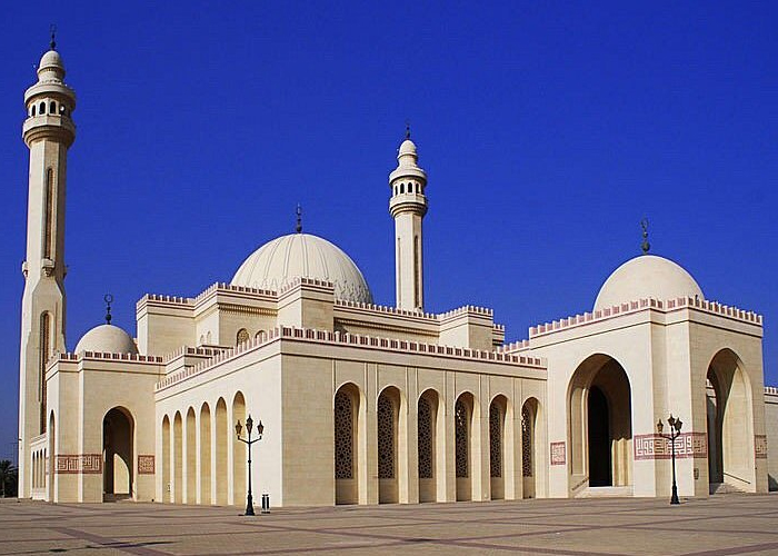 The Al Fateh Grand Mosque, the largest mosque in Bahrain, is known for its architecture and the world's largest fiberglass dome. Visitors are welcome during certain hours and can take a free guided tour.